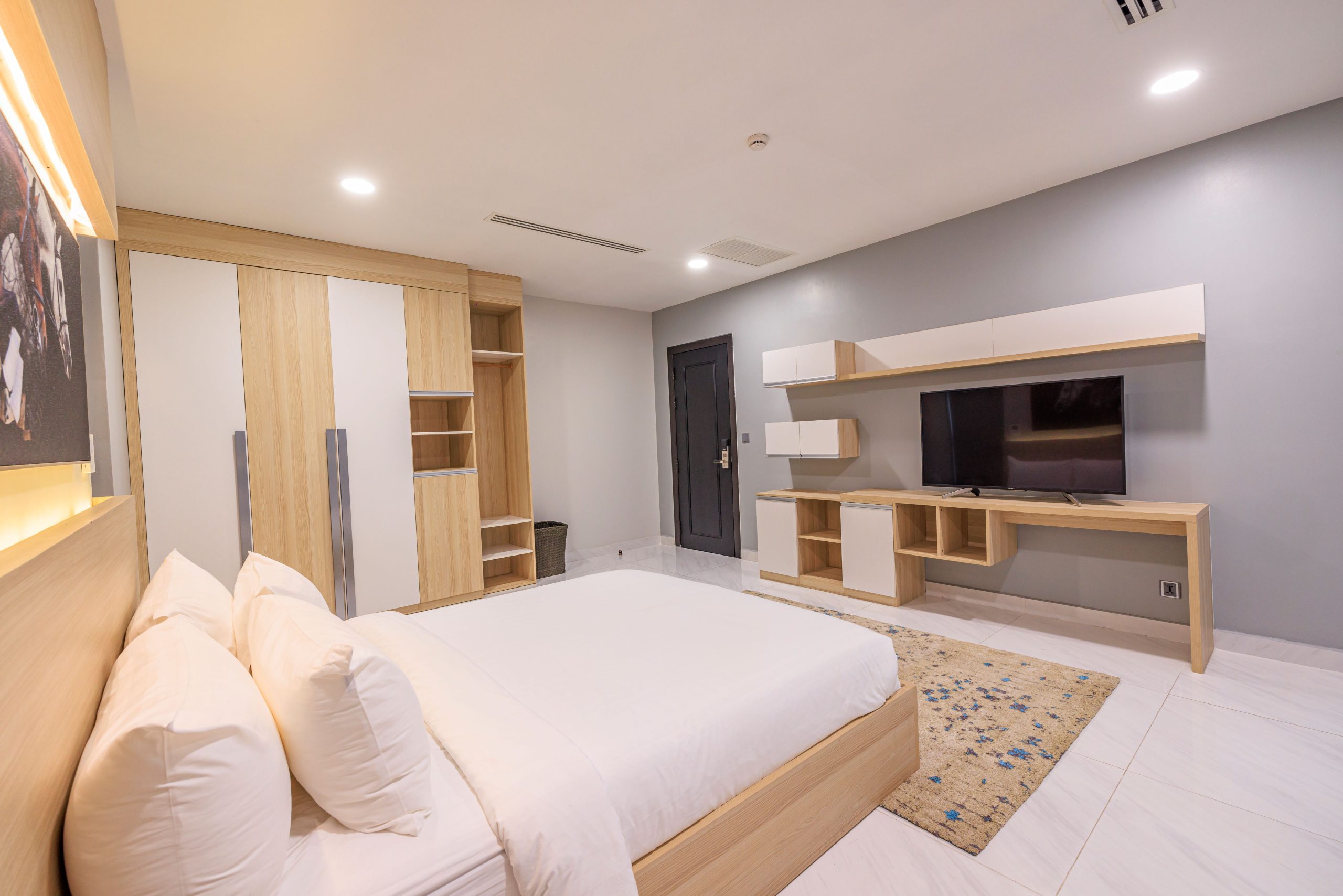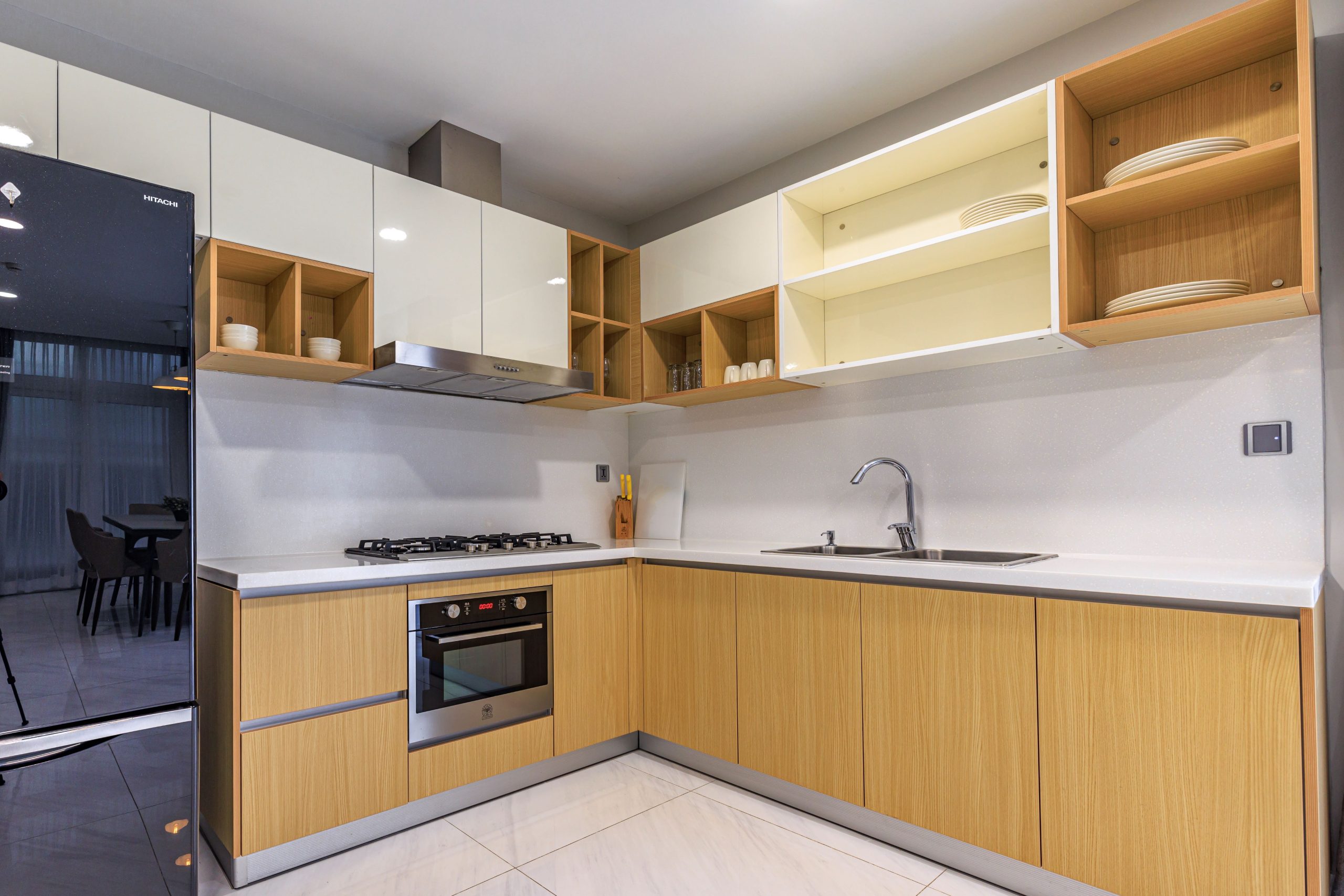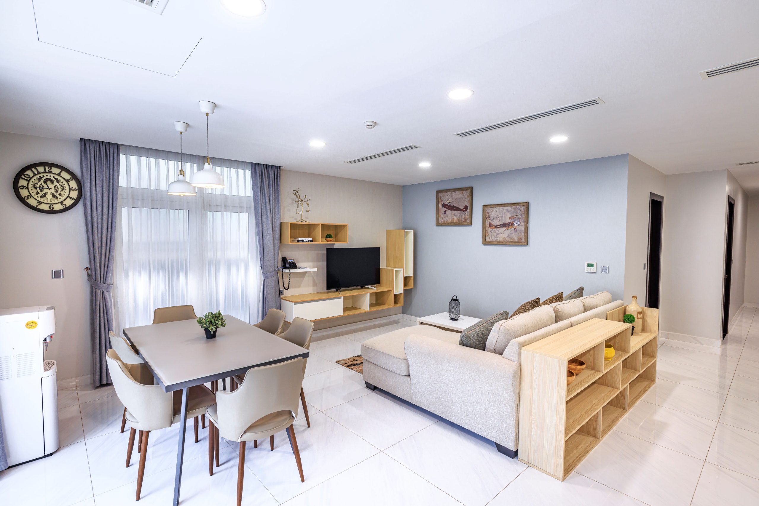 The heart of the apartment is its expansive open-concept space that integrates the living room and kitchen. Large windows and high ceilings create a bright and airy atmosphere. The living room features elegant finishes and ample space for relaxing and entertaining.